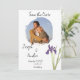 Esta simples pintura na moda púrpura e dourada da íris salva a data papel de carta faz parte de uma série de casamentos de papoila-d-água. Tem espaço para os nomes da noiva e do noivo, a data e o local e uma fotografia na frente e no espaço no verso para fornecer informações adicionais,