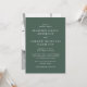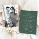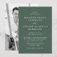 Faça uma declaração com este versátil convite de casamento, com letras brancas em negrito, sotaques caligraficos sutis, e um rico fundo verde-escuro. Projetado para adequar-se a casamentos formais e casuais, o estilo minimalista combina elegância clássica com um toque moderno. O verso destaca a foto vertical do noivado do casal, adicionando um detalhe pessoal e memorável ao seu anúncio especial. Totalmente personalizável para refletir o seu estilo único, este convite mostra lindamente os seus detalhes de casamento com sofisticação do eterno e charme subestimado.