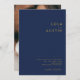 Este marinho mínimo moderno azul | O convite de casamento de fotos casuais de ouro é perfeito para o seu casamento clássico do Boho. Seu design simples, único e abstrato, acompanhado de um roteiro mínimo contemporâneo e de uma paleta escura de cor azul-marinho dá a este produto uma sensação de luxo formal elegante enquanto permanece simplista, boêmia chica. Mantenha-o como está ou escolha personalizá-lo com trabalho de arte ou gráficos de sua escolha!