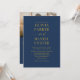 Este convite de casamento azul e ouro marinho é o equilíbrio perfeito entre elegância clássica e design moderna. O fundo do marinho cria uma aparência sofisticada e eterno, enquanto os sotaques dourados acrescentam um toque de luxo e calor - ideal para uma celebração formal ou noturna. Adoramos que você possa incluir uma foto de casal pessoal, dando a este convite um toque sensato e memorável. O código QR é um recurso moderno na moda que permite aos convidados facilmente RSVP ou visitar seu site de casamento — não são necessários cartões extras! Com sua tipografia limpa, layout clássico de crista e opções de papel premium, este convite é projetado para casais que querem algo elegante, polido e moderno sem esforço.