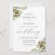 Este convite de casamento rústico tem arranjos de galho de oliveira em dois cantos. A palavra "casamento" aparece em escrita caligráfica. Personalize o texto da cinza de carvão com os nomes da noiva e do noivo e os detalhes do casamento. Substitua facilmente a imagem de exemplo no verso por sua própria foto vertical favorita.