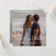 Uma fonte tipográfica muito moderna e ousada forma a frase clássica Salvar a data na frente com o padrão abstrato de cor d'água sage no verso. Personalize facilmente a sua foto, os seus detalhes de casamento e o URL do site de casamento na frente e no verso.
