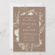 Capture a elegância eterno do seu dia especial com nosso convite de casamento inspirado na vintage. Este belo design apresenta um delicado quadro floral de flores de aquarela e folhagem em tons quentes neutros de branco, bege, marfim, ouro e castanho claro. Acentuado com uma elegante escrita caligráfica, esse convite é perfeito para casamentos românticos que buscam um toque clássico, sofisticado. Mostre a sua foto de noivado vertical favorita na parte de trás do convite. Deixe sua história de amor se desvendar com a graça e charme de uma era passada.