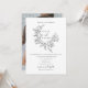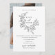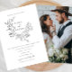 Este elegante convite botânico preto e branco apresenta uma bela crista de casamento foliar com roteiro de caligrafia e nomes personalizados na frente, e uma foto de cheio na parte de trás do cartão. Compre esta loja para a coordenação clássica dos artigos de casamento.