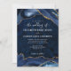 Convite para Casamento de Fotos Elegante do Geodo de Agato Dourado Azul do Marinho Moderno