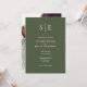 Este convite de casamento minimalista pode ser personalizado com suas iniciais de monograma e detalhes do dia de casamento em um fundo verde-oliva. Com sua foto especial no verso. Projetado por Thisnotme©