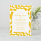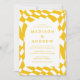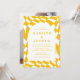 Convide convidados para comemorar seu dia especial com convites de casamento para fotos do Quadro de Verificação Amarelo na moda! O convite mostra seus nomes e detalhes de casamento em letras amarelas cercadas por um quadro de arco branco. O plano de fundo apresenta um padrão de tabuleiro abstrato com um esquema de cores amarelo e branco. O convite reverte para exibir sua foto de noivado vertical com sangramento de cheio.