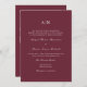 O convite de casamento simples e clássico de burgundy marsala monograma apresenta uma tipografia elegante e um sofisticado design. O verso inclui uma foto personalizada e um código rsvp qr, para que os convidados possam responder no seu site de casamento.