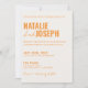 Este convite de casamento é perfeito para o seu casamento se você estiver procurando um design único e fácil de ser editado. Um simples e elegante convite para modelo de casamento laranja de creme minimalista. Que apresenta um plano de fundo creme brilhante. E os primeiros nomes da noiva elegante e noiva laranja. E uma foto que pode ser alterada com informações editáveis com nomes também na parte de trás. Barato e é também um e-convite eletrônico digital se você quiser enviá-lo por texto ou email. Todas as informações são personalizáveis clicando no botão personalizar. Então pegue-o e faça-o seu para que você faça você convidar noivos e excitados.