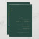 Procurando um convite de casamento moderno e minimalista? Confira nosso convite para casamento com o código QR verde e Dourado! Esta elegante e simples design apresenta um belo esquema verde esmeralda e cor dourada, perfeito para qualquer estação. Com um design frontal e traseiro, você também pode incluir todos os detalhes importantes do seu grande dia. Além disso, o código QR adicionado facilita para os convidados o RSVP on-line. Este convite é também favorável ao orçamento e barato sem comprometer a estética