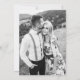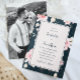 Bonito, azul-chico e cor-de-rosa pincelado, retrógrado, convite de casamento com um roteiro clássico de caligrafia e uma foto de cheio.