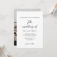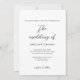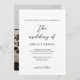 Este convite para o casamento tem uma design simples e elegante com fundo branco e texto preto. Ele combina uma fonte de script graciosa com uma fonte serif limpa, criando uma aparência moderna, mas eterno. O layout é legal e mínimo, dando a ele um toque sofisticado e romântico.