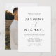 Convites de casamento simples e elegantes, com um roteiro preto e manuscrito, misturado com letras modernas, sobre um fundo branco. Personalize o convite de casamento minimalista com seu nome e detalhes de casamento. O convite reverte para exibir sua foto de noivado vertical com sangramento de cheio. Os convites de casamento brancos e negros são a escolha perfeita para casamentos modernos.