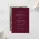 Convites de casamento elegantes com seus nomes e detalhes de casamento em letras brancas com um fundo burgundy. Um moderno roteiro de caligrafia completa o olhar desse convite de casamento chic burgundy. O convite reverte para exibir sua foto de noivado favorita. Este simples convite para casamento de fotos é perfeito para casamentos formais e casuais de qualquer época.