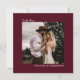 Este belo convite de casamento de cor burgata ou marrom é moderno, minimalista e simples. Ele apresenta um design quadrado com sua foto na frente cercada pela legenda "To Be Wed" e seus nomes. O verso tem toda a redação do convite de casamento, juntamente com um espaço opcional para o seu site. É uma forma única de convidar seus amigos e família para compartilhar seu dia especial.