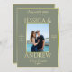 Um belo convite para casamento de fotos elegantes, modernas e elegantes. Com um bonito pano de fundo colorido com uma borda de ouro brilhante... cores sofisticadas e modernas adequadas para qualquer estação. Design de casamento único em sábio romântico e cores douradas. Basta mudar a foto de exemplo para criar seu convite exclusivo pessoal para seu dia especial. Todo texto, fonte e cor da fonte são totalmente personalizáveis para atender às suas necessidades. QR-CODE pode ser aplicado para obter informações adicionais. Se você quiser ajuda para personalizar/personalizar seu produto, entre em contato comigo através da minha loja e eu ficarei muito feliz em ajudá-lo. Bela design de casamento chic, clássico e na moda.