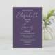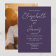 Este convite de casamento elegante e minimalista roxo pode ser personalizado com as suas informações em tipografia chica e fotografia especial no verso. Projetado por Thisnotme©