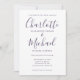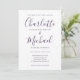 Apresentando nomes de estilo de assinatura, este convite elegante de casamento pode ser personalizado com suas informações de casamento definidas em tipografia púrpura cômica e sua foto escolhida no verso. Projetado por Thisnotme©