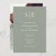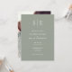 Este convite de casamento minimalista pode ser personalizado com suas iniciais de monograma e detalhes do dia de casamento em um fundo verde de sábio. Com sua foto especial no verso. Projetado por Thisnotme©