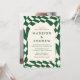 Convide convidados para comemorar seu dia especial com convites de casamento para fotos do Quadro de Retrô Verde da na moda! O convite mostra seus nomes e detalhes de casamento em caracteres verdes cercados por um quadro de arco colorido de creme. O plano de fundo apresenta um padrão de tabuleiro abstrato com um esquema de cores verde e creme. O convite reverte para exibir sua foto de noivado vertical com sangramento de cheio.