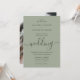 Elegante convite para casamento de fotos verdes com uma fonte moderna. Itens correspondentes disponíveis. Personalize facilmente com sua imagem e detalhes do casamento.