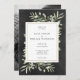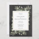 Apresentando delicadas folhas de cor aquosa verde sobre fundo chic chalkboard. Este elegante convite de casamento botânico pode ser personalizado com sua foto e detalhes especiais do dia de casamento em tipografia quic. Projetado por Thisnotme©
