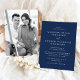 Elevem a sua papelaria de casamento com este elegante convite de casamento de marinho com letras brancas em negrito, sotaques sutis de caligrafia e um fundo de marinho profundo. Projetado para casamentos formais e casuais, o estilo minimalista exude sofisticação do eterno e encanto moderno. O verso mostra a foto vertical do noivado do casal, acrescentando um toque pessoal e sincero ao seu anúncio especial. Totalmente personalizável para refletir seu estilo único, este convite destaca lindamente seus detalhes de casamento com uma estética refinada e versátil.