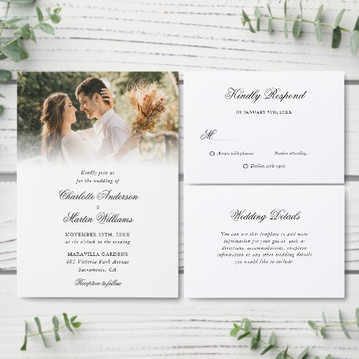 Convite Casamento de Fotografias Moderno 4 do Elegant Scri