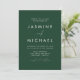 Convites de casamento simples e elegantes, com um roteiro branco e manuscrito misturado com letras modernas, contra um fundo verde-caçador. Personalize o convite de casamento minimalista com seu nome e detalhes de casamento. O convite reverte para exibir sua foto de noivado vertical com sangramento de cheio. Os convites de casamento verdes para caçadores de chic são a escolha perfeita para casamentos modernos.