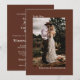 Este belo convite de casamento castanho-castanho é moderno, minimalista e simples. Ele apresenta um design vertical ou orientado para retratos com sua foto na frente cercada pela legenda "To Be Wed" e seus nomes. O verso tem toda a redação do convite de casamento, juntamente com um espaço opcional para o seu site. É uma forma única de convidar seus amigos e família para compartilhar seu dia especial.