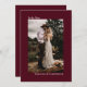 Este belo convite de casamento de cor burgata ou marrom é moderno, minimalista e simples. Ele apresenta um design vertical ou orientado para retratos com sua foto na frente cercada pela legenda "To Be Wed" e seus nomes. O verso tem toda a redação do convite de casamento, juntamente com um espaço opcional para o seu site. É uma forma única de convidar seus amigos e família para compartilhar seu dia especial.