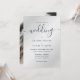 Convide sua família e amigos para sua elegante celebração de casamento com estes minimalistas, mas elegantes convites para casamento de fotos marinhos, azuis e prateadas, com uma letra moderna. Itens correspondentes disponíveis.