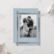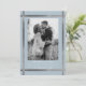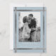 Foto: Casamento Salve a Data. Fundo azul gelado. Filtro preto e branco aplicado à foto. Prata Metalizada.