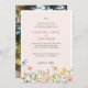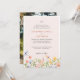 Este convite de casamento para na moda e elegantes monogramas apresenta flores silvestres de aquarela, folhas, libélulas em paleta de cor aquosa de rosa, azul amarelo e verde. No verso, você tem espaço para sua foto favorita na orientação vertical ou retrato. Perfeito para primavera, verão ou casamentos outono, jardim ou celebração ao ar livre.