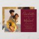 Apresentando suas fotos especiais e nomes de estilo de assinatura, este elegante convite para o casamento burgundy e gold pode ser personalizado com suas informações em letras de música. Projetado por Thisnotme©
