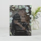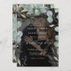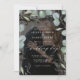 Moody elegante coloração d'água sage verde e empoeirado tema botânico azul poeirento tema preto cobertura transparente de fotos (faux vellum) convite de casamento com um roteiro de caligrafia moderna.