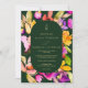 A queda em negrito é muito grande, convite para casamento com fotos florais de cor d'água com flores cor rosa, roxa, amarela, verde e abstrato e forma retangular geométrica arredondada em verde-escuro, adicione sua foto no verso. Perfeito para todos os casamentos da temporada.