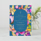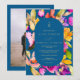 A queda em negrito é muito grande, convite para casamento com fotos florais de cor d'água com flores cor rosa, púrpura, amarela, verde e abstrato e uma forma retangular geométrica arredondada em azul, adicione sua foto no verso. Perfeito para todos os casamentos da temporada.