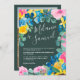 Casamento de fotos florais, verde-rústico, de verão, com girassóis azuis, amarelos e amarelos pintados, rosas cor-de-rosa, eucalipto verde-sábio em verde-escuro editável. Perfeito para o verão, casamentos externos.