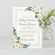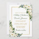 Verde e Branco Botânico Floral de Cores Aquáticas com Convite Dourado para Casamento de Quadros com Texto Dourado e Verde, Foto de Volta