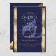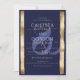 Este convite de casamento moderno e chic é uma forma excelente de enviar uma vibração clássica e sofisticada aos seus amigos e familiares. Ele apresenta uma estrutura de dupla faixa de folha de ouro pintada manualmente e falsa, em forma de pincel de folha de ouro, sobre um simples fundo azul marinho com tipografia elegante e uma grande e desenhada por medida no fundo para um toque especial extra. É um design de luxo contemporâneo, elegante, minimalista e original para seu evento especial! ***NOTA DE DESIGN IMPORTANTE: Para qualquer solicitação de design personalizada, como solicitações de correspondência de produtos, alterações de cor, mudanças de posicionamento ou qualquer outra solicitação de alteração, clique no botão "CONTACT" ou envie um e-mail ao designer diretamente em lafemme.art@gmail.com. Você pode até enviar um e-mail para ela solicitando um design completamente personalizado e novo.