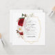 O belo buquê floral de aquarelas em vermelhos ricos e brancos inclui lindos peões, lírios, verde-luxuoso e hálito de bebê. O buquê é colocado sobre um fundo branco, com uma canvas vermelha atrás. Esta design termina com um simples roteiro de caligrafia elegante.