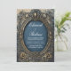 Entra na grandeza do passado com este Convite para Casamento de Frame Dourado do Ornamentado Vitoriano. Apresentando uma estrutura de ouro antiga e intricadamente detalhada com escrolagem floral e rosas decorativos, este design é colocado contra um fundo azul-marinho rico e texturizado com efeitos de patina antigos. O quadro oval opulente oferece o espaço perfeito para seus detalhes personalizados do evento, criando uma primeira impressão inesquecível. Este elegante convite vitoriano é perfeito não só para casamentos, mas também para festas de noivado, chás de panela, renovações de votos, aniversários de marcos, aniversários, bolas de mascarada e eventos formais de escala superior. Sua aparência versátil e real é muito parecida com os temas clássicos e dramáticos de eventos. Personalize facilmente o texto para ajustado da sua ocasião e torne este eterno design exclusivamente seu. Quer você esteja planejando uma bola extravagante ou uma celebração íntima, este convite adiciona um toque de esplendor aristocrático a qualquer evento.