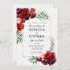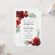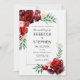 Um convite de casamento moderno e elegante, com rosas vermelhas clássicas e sotaque burguês, com flores de aquarela e verde. Rosas vermelhas contrastam com flores cremolisas, acentuadas pela escabiosa vermelha profunda e outras flores de enchimento, e todo o conjunto faz um design clássico para um casal moderno.
