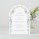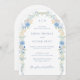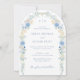 Este convite para o casamento apresenta um quadro floral em forma de arco com cor d'água com flores elegantes em diferentes tons de letra azul e escrita à mão. Com seu sofisticado quadro floral e atenção aos detalhes, este convite dará o tom para um casamento memorável e elegante.
