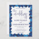 Convite Casamento de Frame Floral de Mármore Azul e Branco