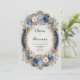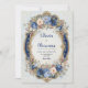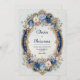 Convite Casamento de Frame Floral Dourado e Azul Vitoriano