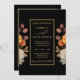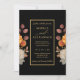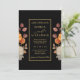 Ponha o tom para uma celebração romântica de outono com este elegante convite de casamento, com uma ilustração de cor d'água exuberante das florações do outono em ferrugem quente e tons de terra. Projetada com fundo preto profundo e um quadro retangular clássico de ouro, a tipografia centrada adiciona encanto e equilíbrio de eternos. Perfeito para casamentos outono botânicos, rústicos ou modernos, este modelo é totalmente personalizável — edite texto, fontes e cores para se adequar à sua visão. Uma bela escolha para casais que amam estética natural rica e design refinada.