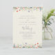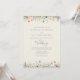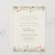 Este maravilhoso convite de casamento de flores silvestres multicoloridas é perfeito para um casamento russo. O design apresenta flores cor-de-rosa, roxa, esbranquiçada, amarela, marinho azul, verdes e campo selvagem reunidas em buquês florais sem costura e deliciosos, evocando a beleza natural. Salve o papel, incluindo mais detalhes na parte traseira do convite em vez de em uma placa de gabinete separada.