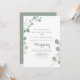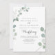Este minimalista eucalipto verde e o convite para o casamento é perfeito para um casamento rústico. A design apresenta uma coloração aquosa elegante folhas verdes de eucalipto. Salve o papel, incluindo mais detalhes na parte traseira do convite em vez de em uma placa de gabinete separada.